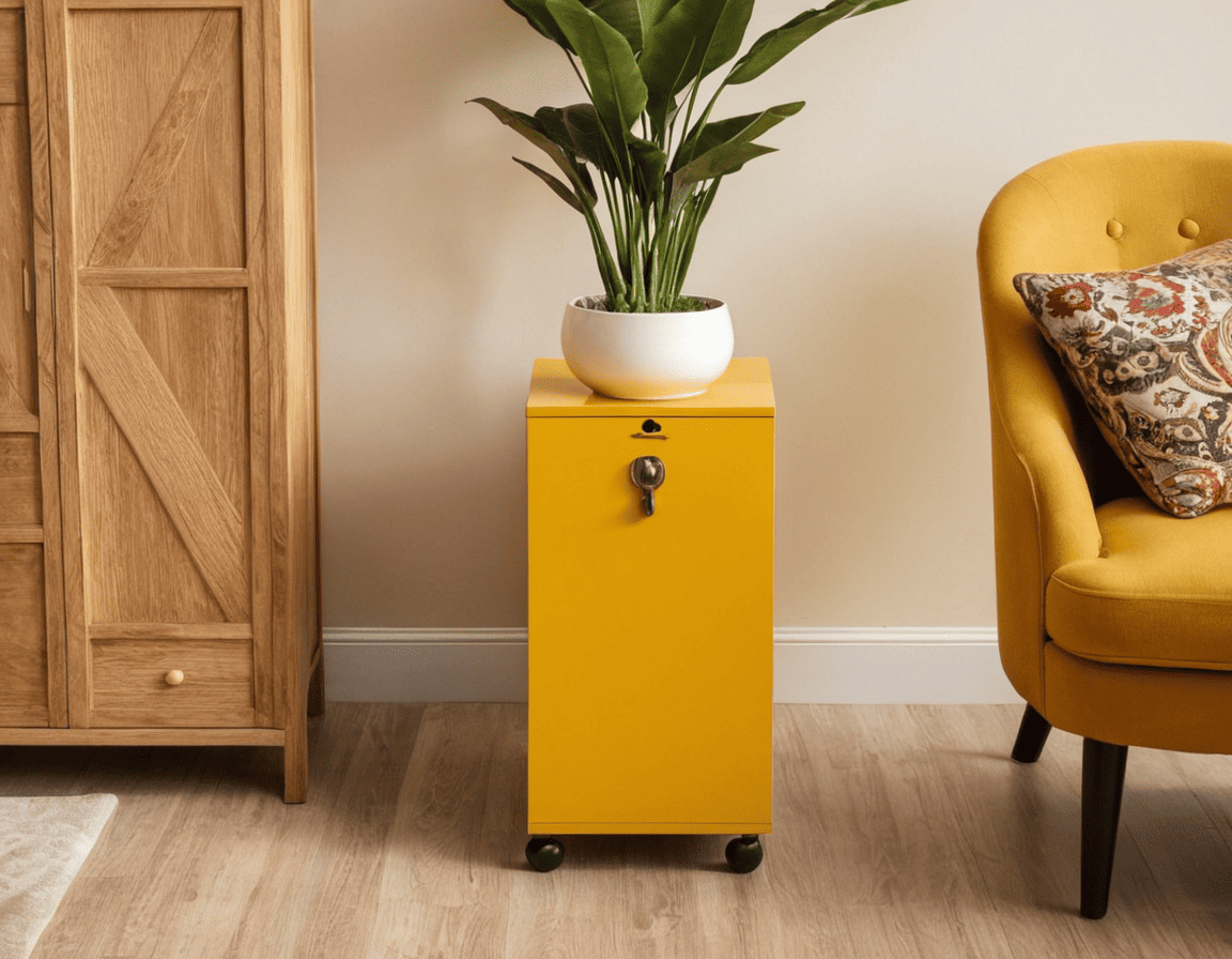 This modern metal pedestal serves multiple functions, making it an essential decor piece for any home or office: